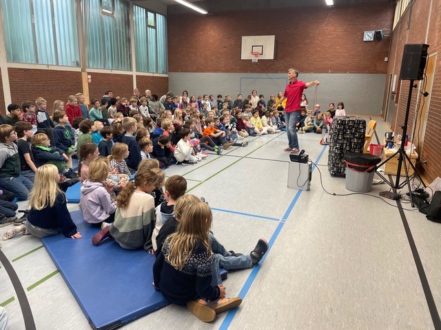 Der Physikant brachte mit seiner lebendigen, teils lustigen und aufwühlenden Show alle Bodelschwinghkinder zum Staunen, Lachen und Nachdenken. Der eine oder andere Versuch wird sicherlich im Sachunterricht ausprobiert werden. Die einzelnen Experimente wurden anschließend im Klassenverband noch einmal aufgearbeitet. Als Inspiration für den Themenbereich Physik war der Besuch sicherlich ein wunderbarer Einstieg in die Welt der Physik.